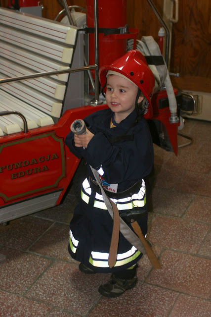 Dziś w ramach walki z otaczającą nas biało-szarą beznadzieją, postanowiliśmy dodać naszym żywotom więcej czerwieni. A całkiem nieoczekiwanie Muzeum Pożarnictwa okazało się miniaturowym strażackim przedszkolem, gdzie młodzi fascynaci sikawek i pomp mogli się przebrać za swoich idoli, "jeździć" strażackim melexem, dzwonić dzwonkami, trzymać toporki i węże, drzeć się w niebogłosy, ku uciesze tatusiów dzierżących aparaty.